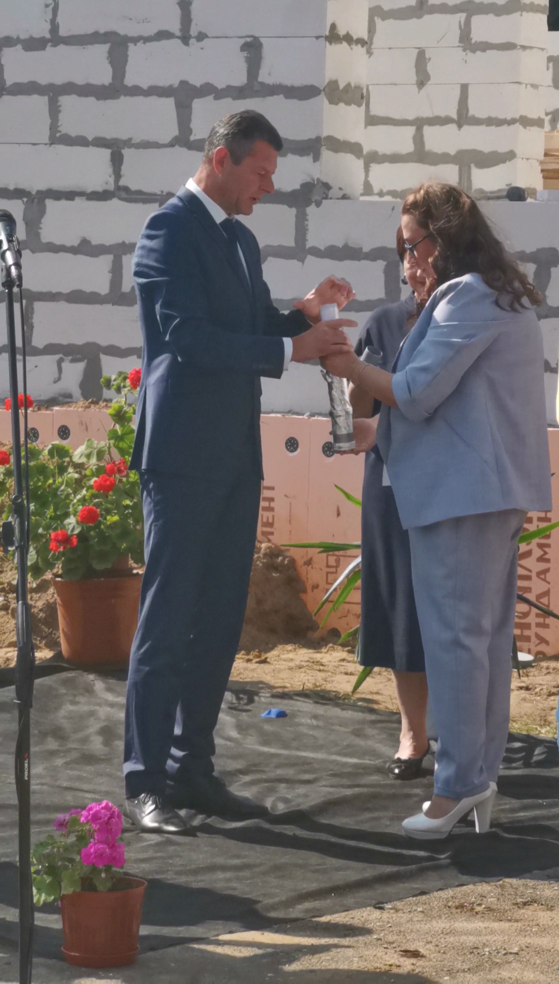 Торжественную часть праздника завершило волнительно-радостное событие: Соколовский С.И. и Локтина А.Е. совершили закладку послания потомкам, где говорится о прошлом и настоящем ветеринарии, оставлены благие пожелания и выражена надежда на великое будущее ветеринарного дела.