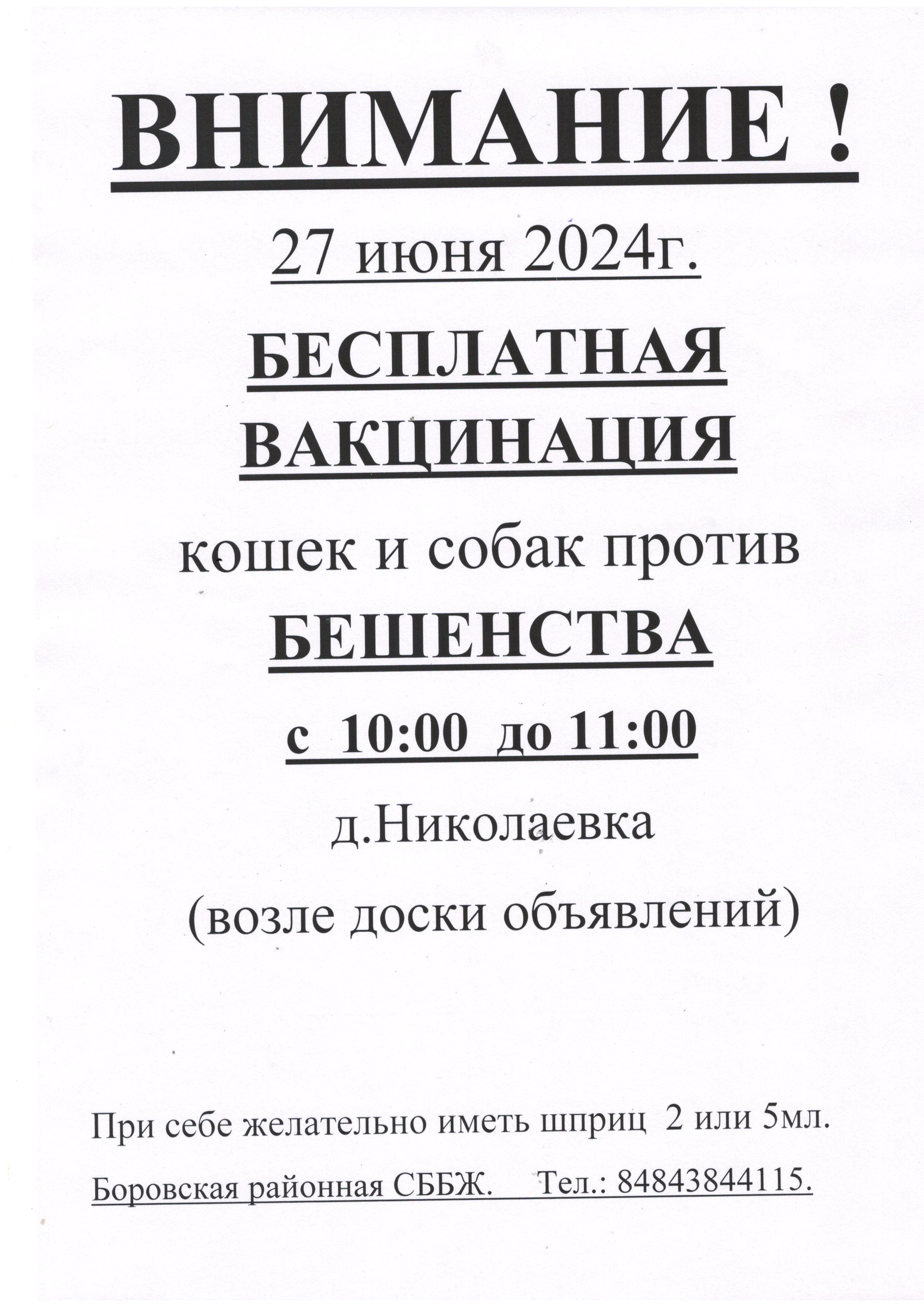 • Бесплатная вакцинация против бешенства собак и кошек в Боровске